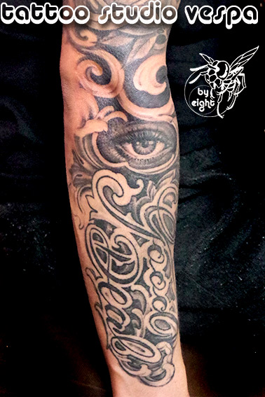 和彫りで、腕の方までデザインは考えてありますが、これ1度入れてから来られて無いので、ここで終了かもしれません。。